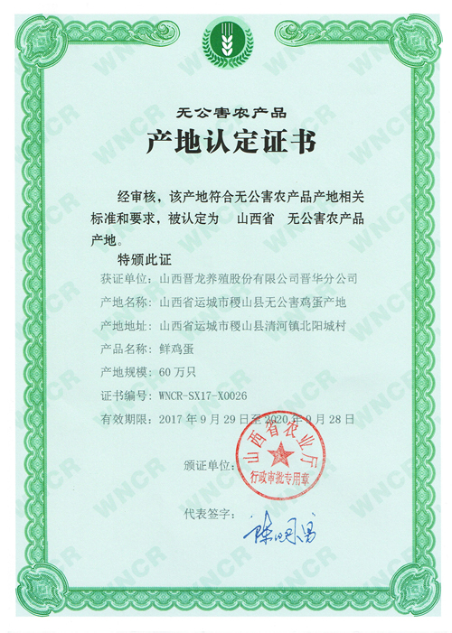 無公害產(chǎn)品認(rèn)證證書